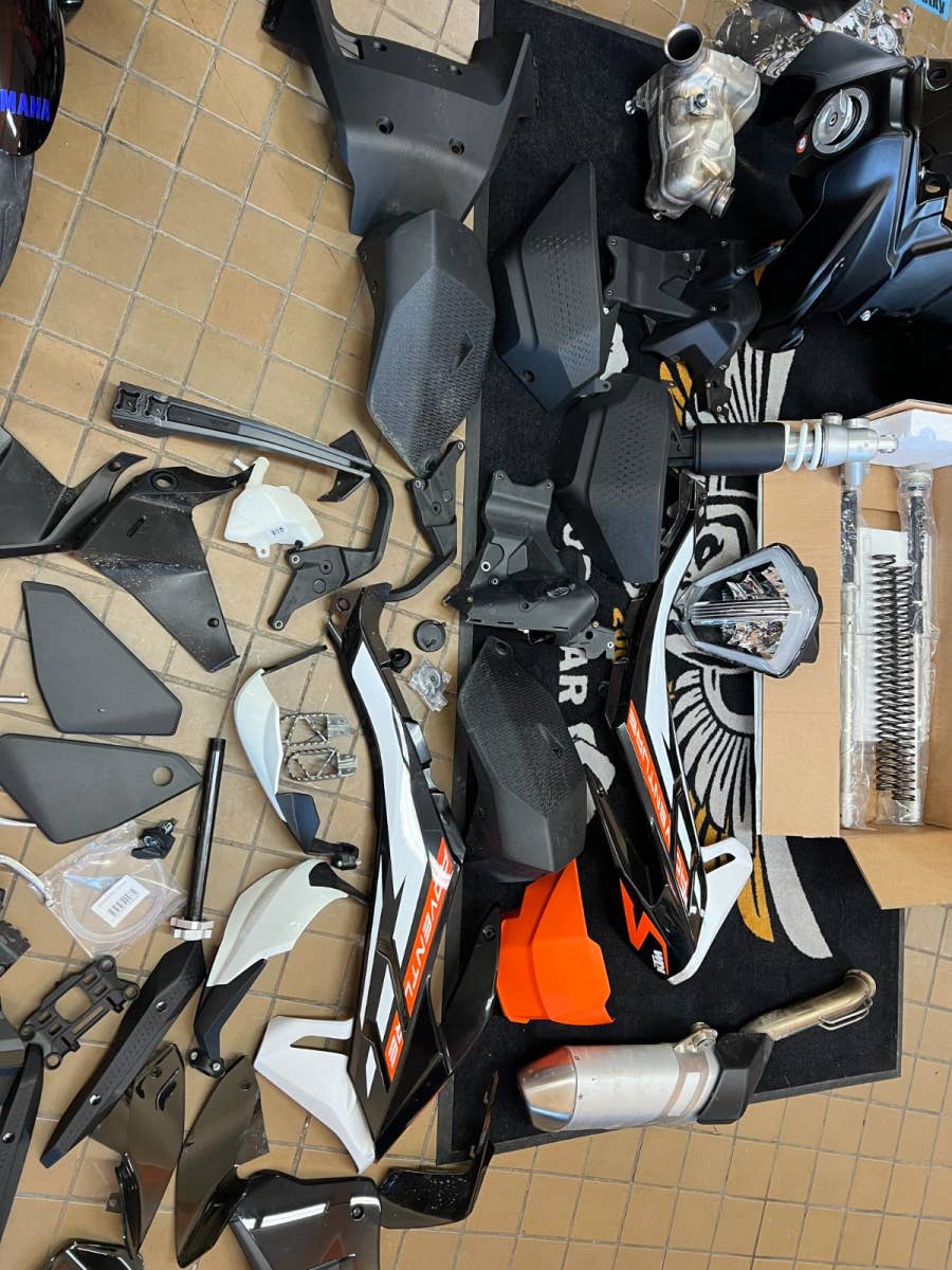 Vše sundáno z nové motorky, po přestavbě od Rade Garage, takže nové!
