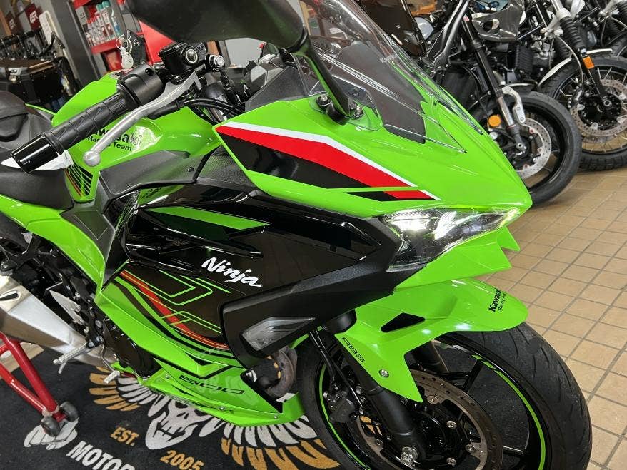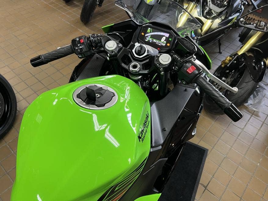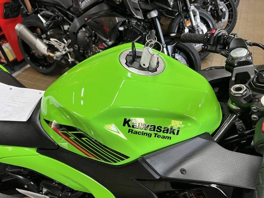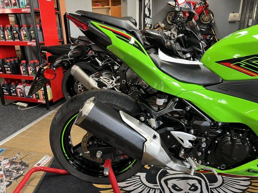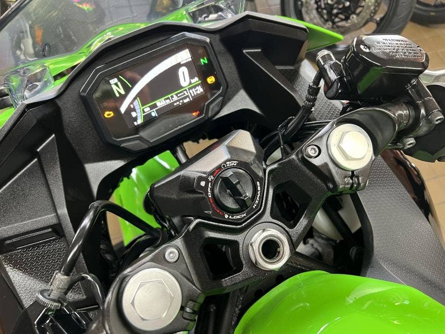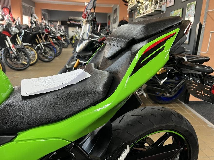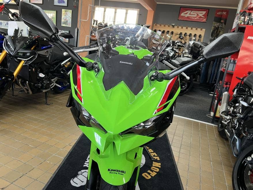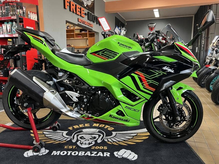1. majitel, 2klíče, pěkný původní stav a lak, žádné úpravy ani tunig, nový model s TFT tacho, bezklíčové ovládání, světla Full LED, v továrních barvách Kawasaki Racing Teamu z WSBK, výkon 33,4 kW i pro A2, dobré pneu, více foto u nás na webu, provedena dovozová STK na 4 roky včetně evidenčky, registrace na CZ TP pouze 500,