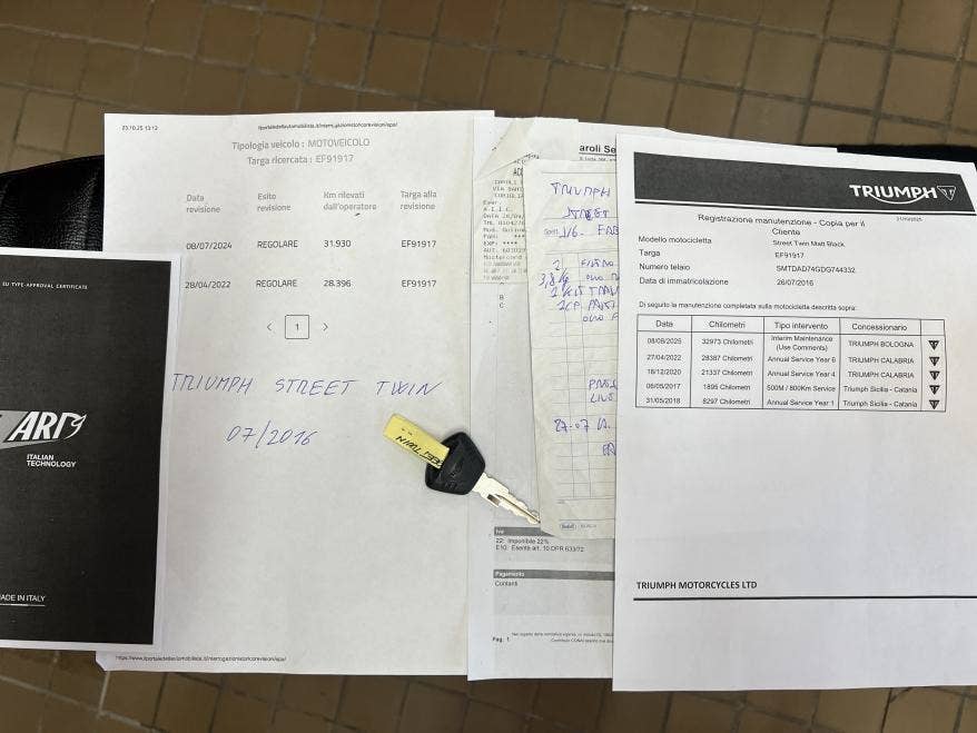 2klíče, výpis ze systému Triumph, pravidelný servis, doložené km, padádní atraktivní stylovka, svody + černé koncovky ZARD s homologací původně 32t.!( hluboký zvuk), řídítka, zrcátka, ručky, páčky, vše sladěno, krátký držák SPZ s LED světlem + blinkry, padací rám, nyní nová sada pneu, více foto u nás na webu, provedena dovozová STK na 4 roky včetně evidenčky, registrace na CZ TP pouze 500,
