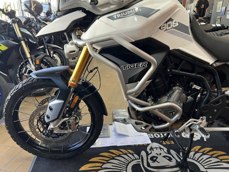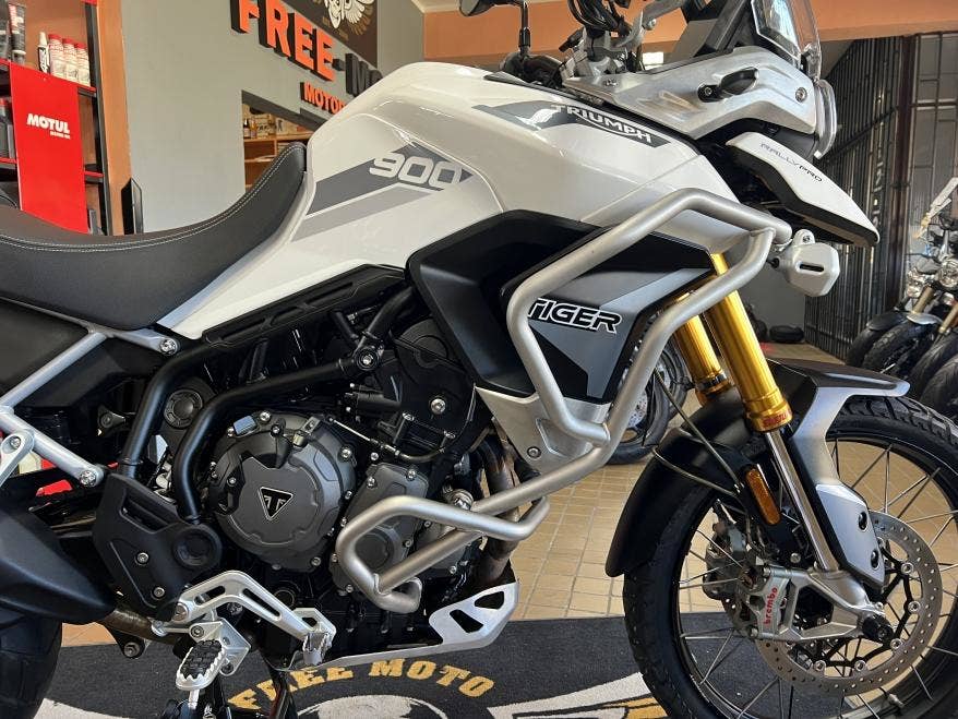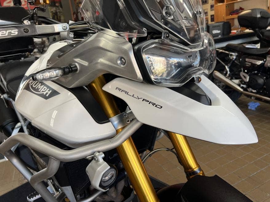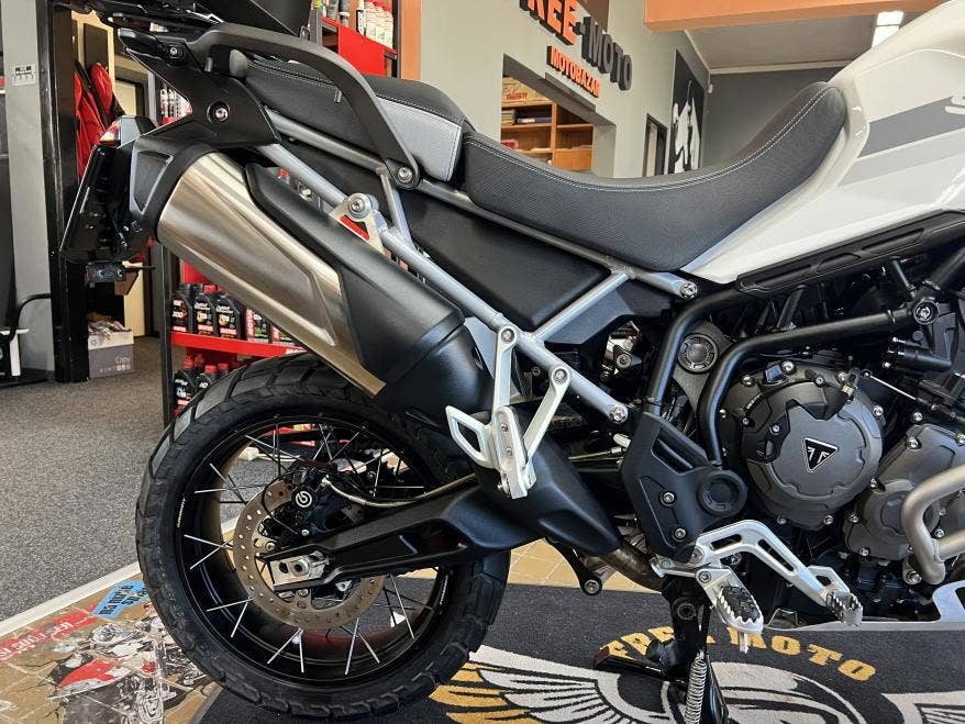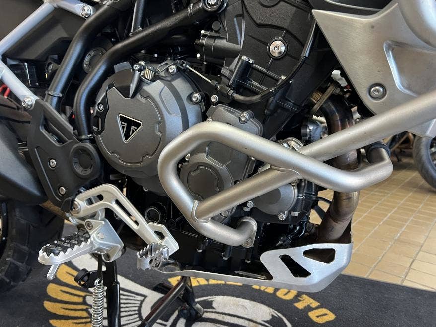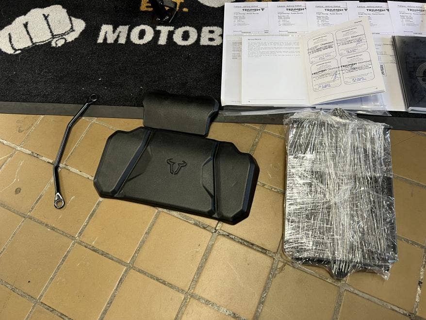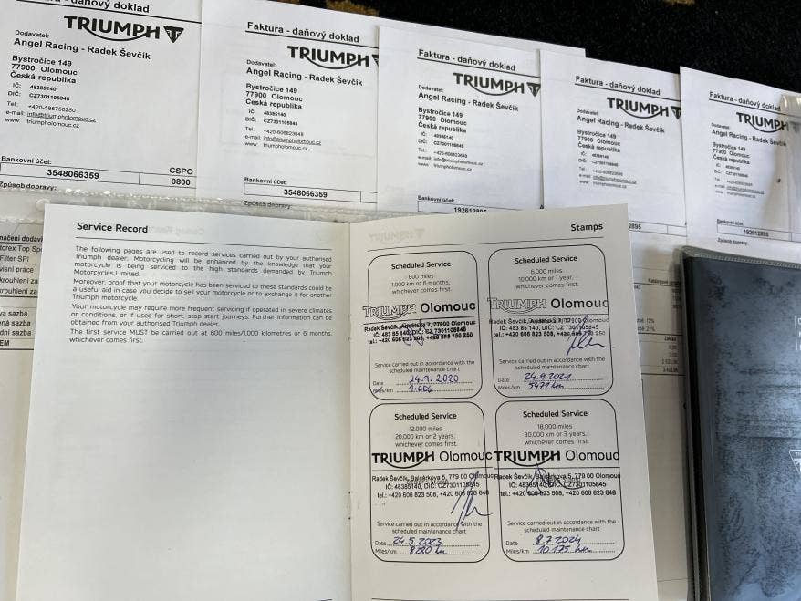 1. majitel koupeno nové v CZ 9/2020, 2klíče, vyplněná serviska pouze Triumph Olomouc + faktury, pravidelný servis každý rok, výměny oleje po 2-3t km. sav nové motorky bez oděrky s odpočteme DPH! (235t. bez DPH), model PRO v plné el. výbavě, všechny režimy, asistent řazení, tempomat, vyhřívání rukojetí + sedačky, spodní rám atd., navíc doplněno: kryt předního světla, drák navigace EVO TECH + navigace Garmin Zumo XT2 (původně 12t.!), vrchní padací rám, pevné vyztužené kryty rukojetí Barkbusters, držák + kvalitní alu kufr SW MOTECH s opěrkou, kryt chladičů, poslední servis 10tkm, dobré pneu i řetězovka, bez investic, STK do 09/2026