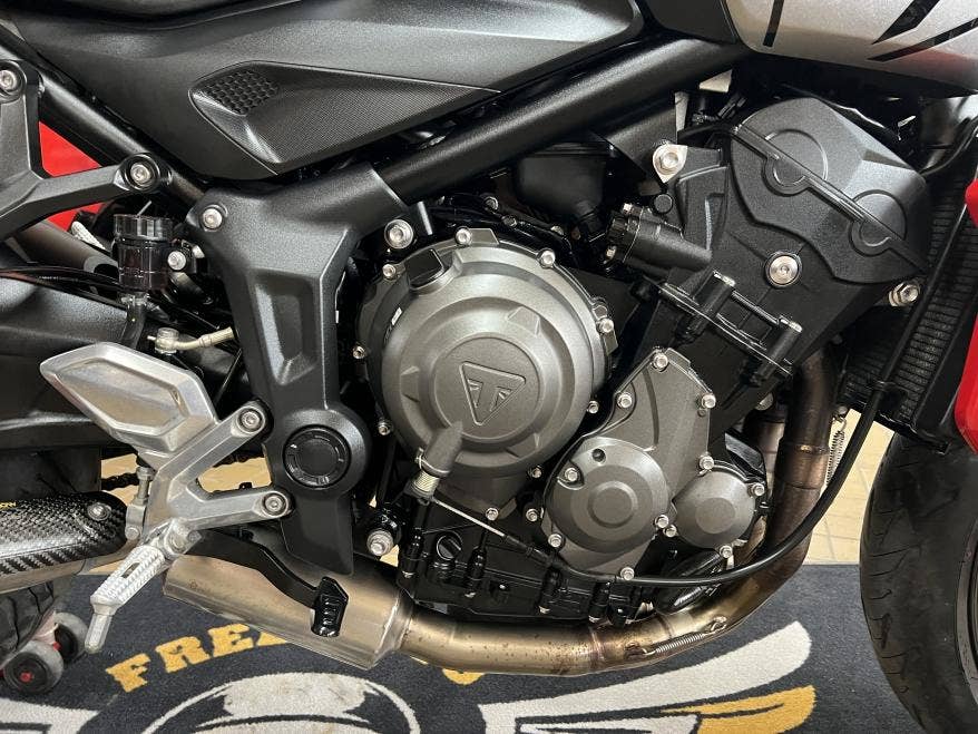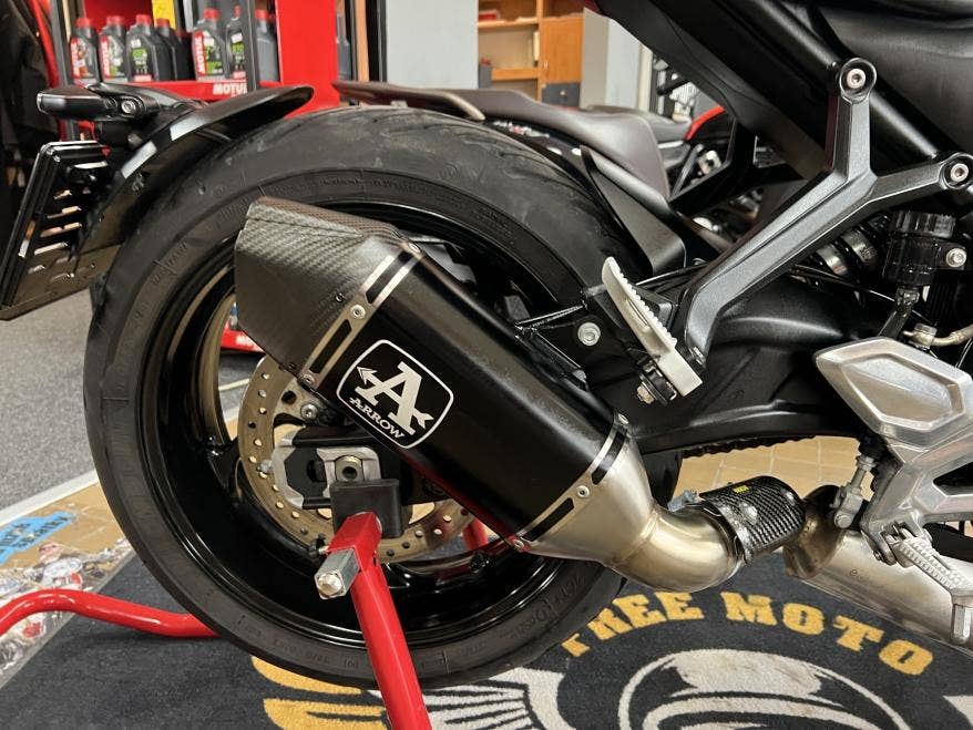 1. majitel, 2klíče, serviska, pravidelný servis, výpis ze systému Triumph, poslední 5800 km 08/2025 příští 13800 km, stav nové motorky bez oděrky, navíc má: přední kaplička, asistent řazení quickshifter, komplet svody + koncovka Arrow s homologací ( atraktivní zvuk, původně 34t.), kryt chladiče, stavitelné páčky, zánovní sada pneu, bez investic, více foto u nás na webu, provedena dovozová STK na 4 roky včetně evidenčky, registrace na CZ TP pouze 500,