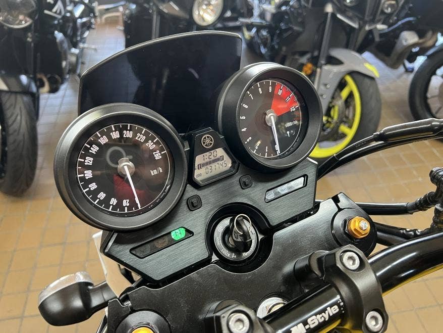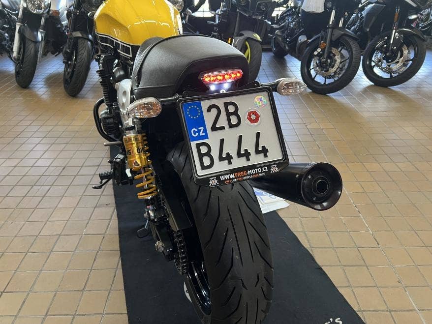 1. majitel v CZ, 3klíče, serviska, doložené km, velmi pěkný stav bez oděrek, výroční barva, mnoho doplňků: přední plexi orig. Yamaha, řídítka, stavitelné rozšířené zrcátka, páčky, padací rámy, centrální stojan SW Motech, kryt chladiče, krátký držák SPZ s LED světlem, homolog. výfuk Akrapovič přímo pro tento model z orig. příslušenství, přetěsněné vidlice, nyní nová baterka, nové desky, dobré pneu i řetězovka, STK do 02/027