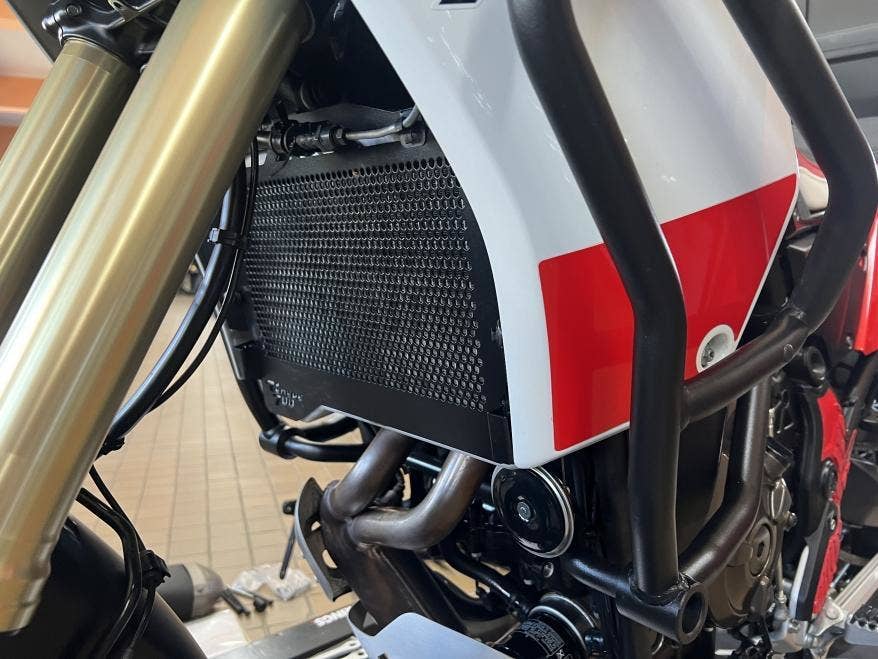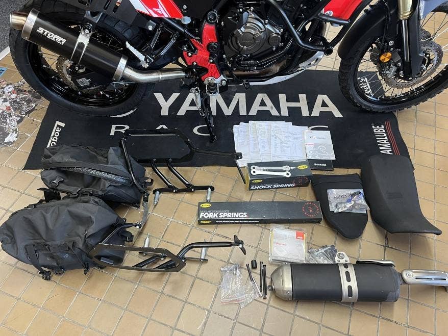 3klíče, doložené faktury od pravidelného servisu, krásný stav nové motorky bez oděrky, nejetá v terénu, výbava za několik desítek tisíc: cestovní plexi Puig, vyztužené kryty rukojetí, padací rámy, kryt chladiče, hlavní stojan, držák + plotna + velký kufr Givi, jednodílné komfortní sedlo + orig. sedačky, opěry na brašny + celkový držák + brašny Oxford, progresivní pružiny předek + zadek K-Tech + orig., rozšířený boční stojan Givi, výfuk Storm s homologací + originál, ochrana rámu Acerbis + polepy, vodící ochrana řetězu, 4tkm po servise včetně nové řetězovky, dobré pneu, STK do 02/28